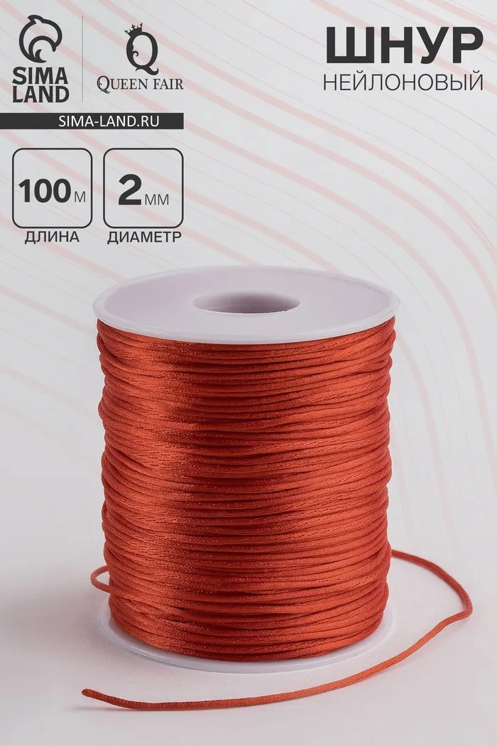 Шнур нейлоновый на бобине d=2 мм, L=100 м, красный — Характеристики