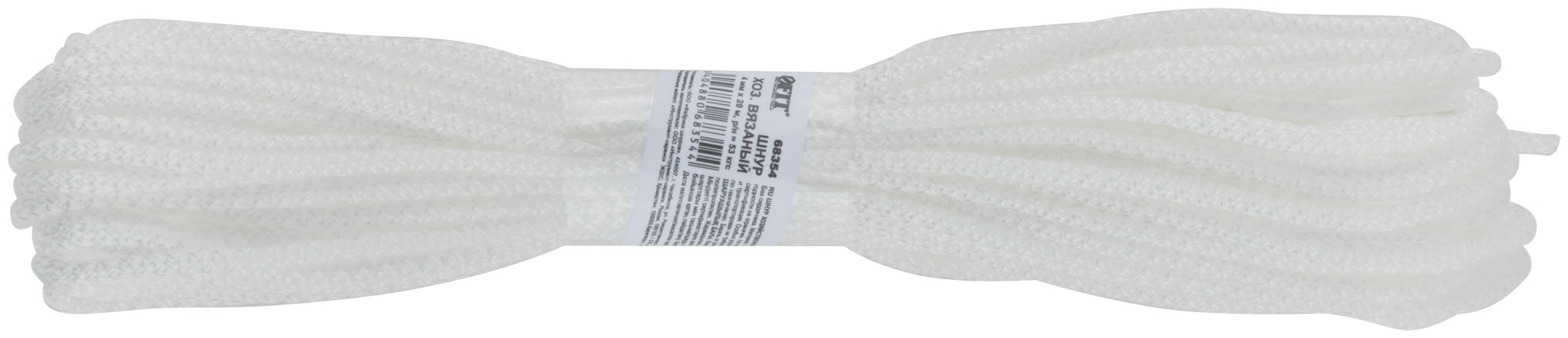 Шнур вязаный полипропиленовый без сердечника диаметром 4 мм и длиной 20 м идеально подходит для различных хозяйственных нужд. Он поможет надежно закрепить или подвесить предметы на даче, в гараже или в мастерской.