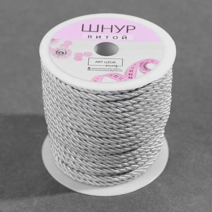 Шнур витой, d=3 мм, 25±1 м, цвет серебряный — Характеристики