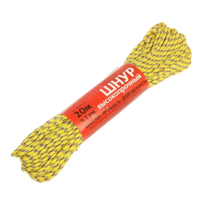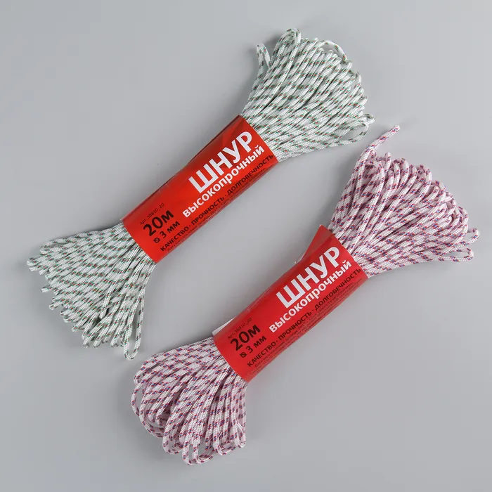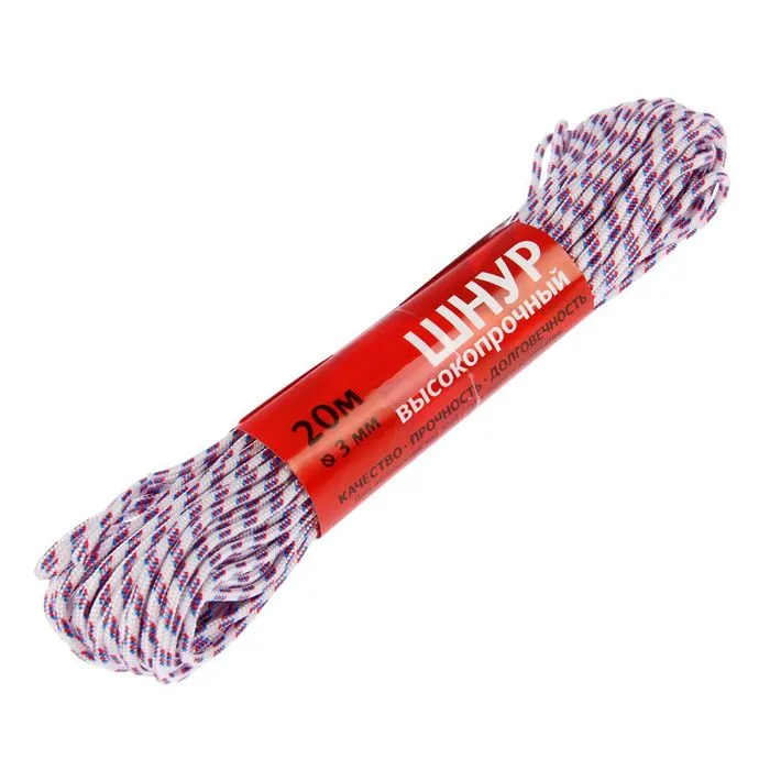 Шнур высокопрочный, d=3 мм, 20 м, МИКС — Характеристики