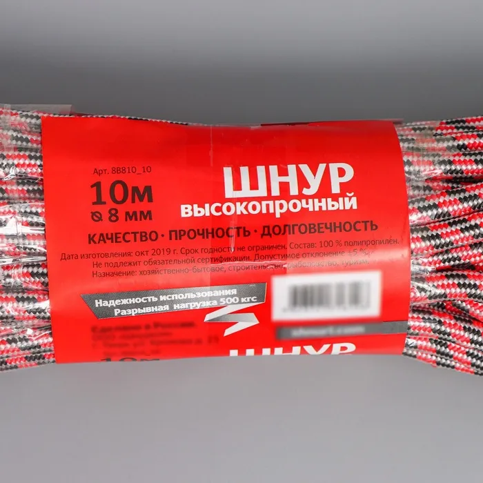 Шнур высокопрочный, d=8 мм, 10 м, МИКС — Характеристики