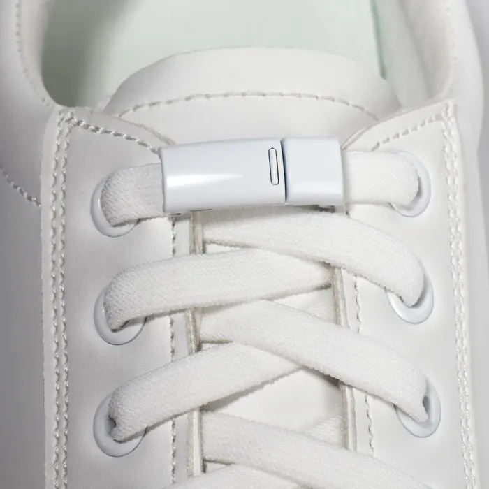 Шнурки с фиксаторам станут Вашим спасением! Просто зашнуруйте обувь привычным способом, наденьте и закрепите металлические капсулы и надолго забудьте о проблемах со шнуровкой. Данные шнурки прекрасно подойдут для детской и спортивной обуви, станут помощниками для беременных и пожилых людей. По достоинству их оценят люди, ведущие активный образ жизни.Благодаря материалу вам не придётся раскручивать фиксатор, каждый раз снимая кроссовки или ботинки. Металлическая капсула придаст обуви стильный и аккуратный вид.