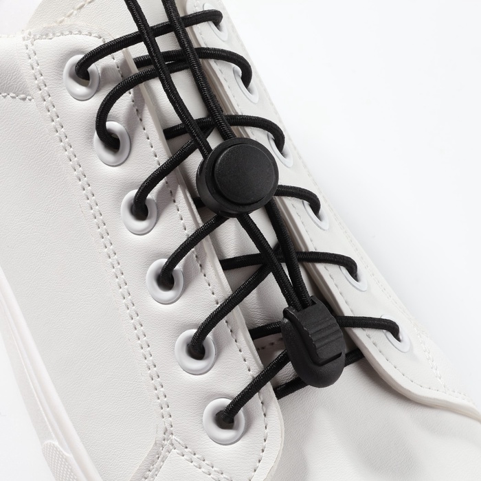 Шнурки для обуви, пара, круглые, с фиксатором, эластичные, d=3 мм, 100 см, чёрные