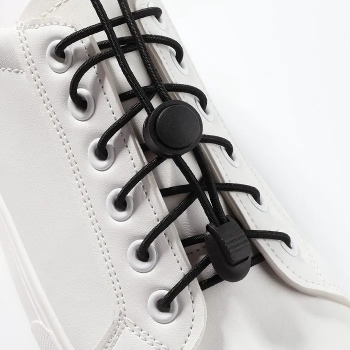 Шнурки для обуви, пара, круглые, с фиксатором, эластичные, d=3 мм, 100 см, чёрные — Характеристики