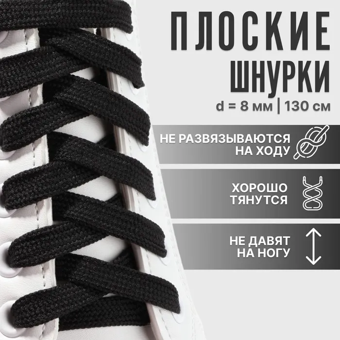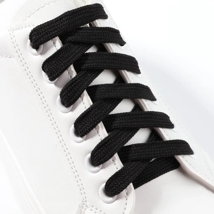 Шнурки для обуви, пара, плоские, 8 мм, 130 см, цвет чёрный — Характеристики