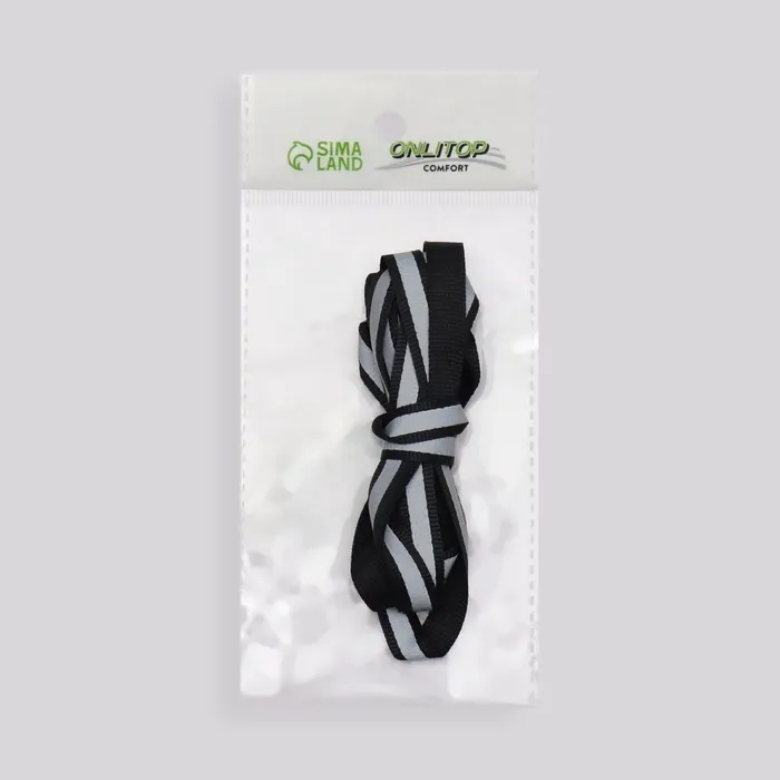 Шнурки для обуви, пара, плоские, со светоотражающей полосой, 10 мм, 110 см, чёрные — Характеристики