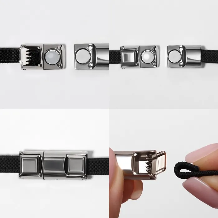 Надоели постоянно развязывающиеся бантики? Шнурки с фиксаторам станут Вашим спасением! Просто зашнуруйте обувь привычным способом, наденьте и закрепите металлические капсулы и надолго забудьте о проблемах со шнуровкой.