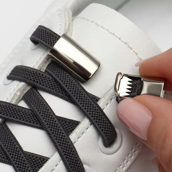 Шнурки для обуви с фиксаторами, которые не надо завязывать, позволят вам навсегда забыть про проблему развязывающихся шнурков. В отличие от обычных классических и силиконовых шнурков, плоские широкие шнурки без завязок с металлическими фиксаторами надёжно крепятся и не раскручиваются.