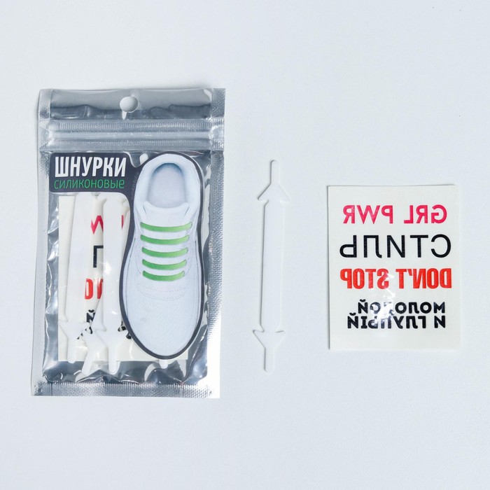 Шнурки силиконовые, цвет белый, набор 6 шт + переводное тату