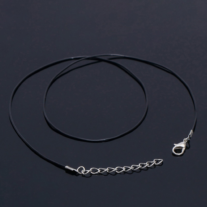 Шнурок каучуковый, неполый, 60 см + удлинитель 5 см, d=1.3 мм, чёрный в серебре