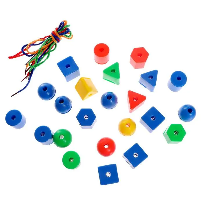 «Моя первая шнуровка» — увлекательный способ развития мелкой моторики и усидчивости ребёнка. Задача малыша: нанизывать элементы на шнурок в определённой последовательности. Такая игра научит различать цвета и формы предметов.