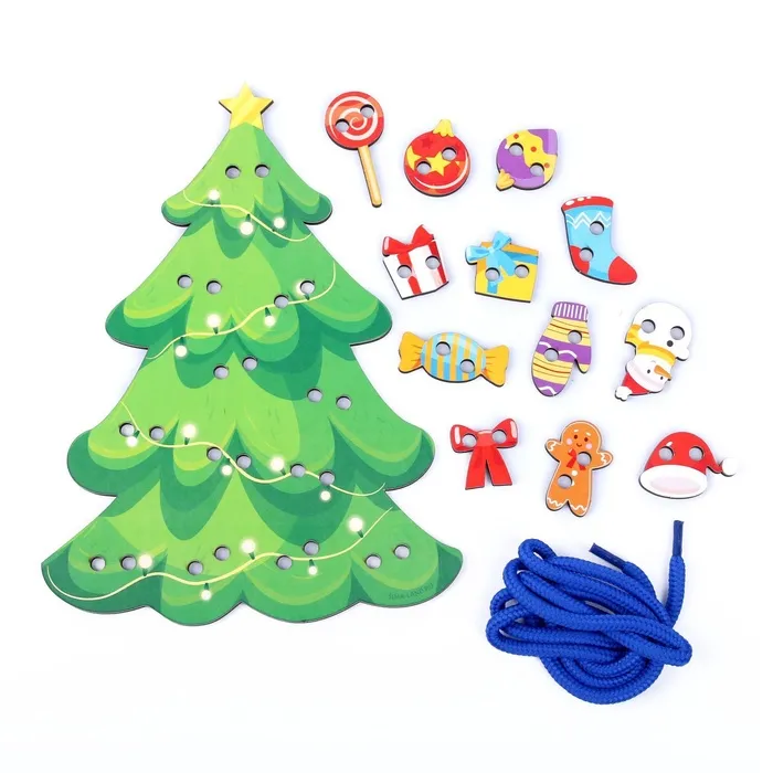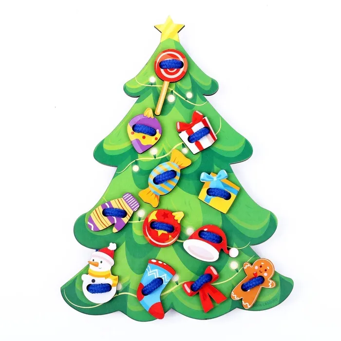 Шнуровка «Нарядная ёлочка» помогает ребёнку развивать важные навыки, такие как ловкость рук, концентрация и пространственное мышление. Продевая шнурок через отверстия, малыш учится координировать движения, а процесс украшения ёлочки стимулирует творческое воображение. Это не только увлекательная игра, но и эффективный тренажёр для подготовки к повседневным задачам.