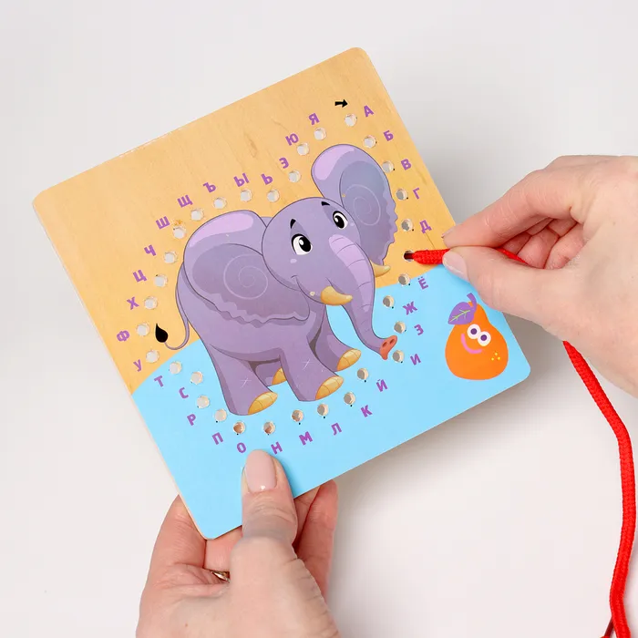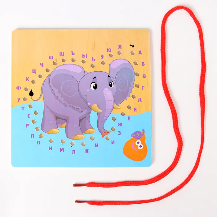 Шнуровка слоник «Учим алфавит» 14.5×14.5×0.5 см — Характеристики