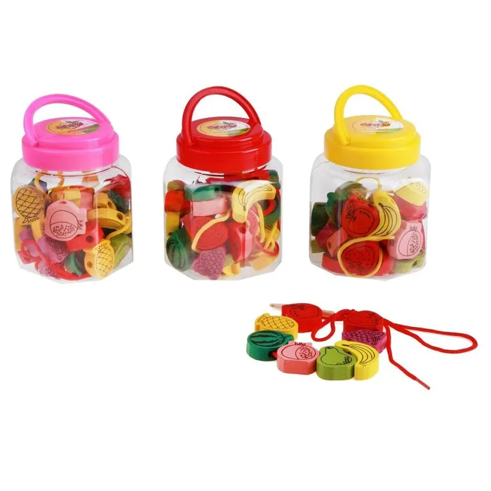 Шнуровка в банке 40 деталей «Фрукты», 2 иглы дерев, 2 шнурка, МИКС — Характеристики