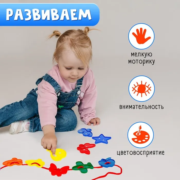 «Весёлые фигурки» — развивающий набор для детей от 3 лет. Развивайте внимание и логическое мышление малыша с увлекательной игрой-шнуровкой.
