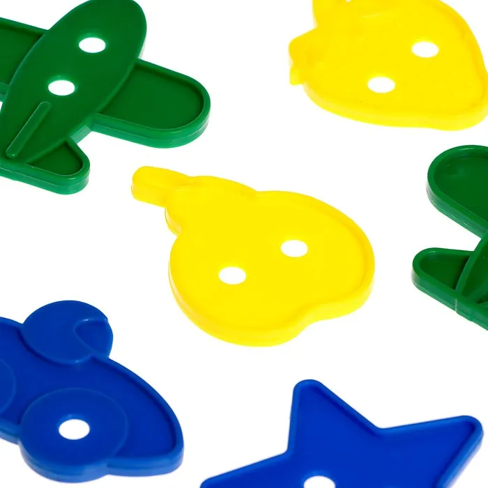- Попросите ребёнка нанизать фигурки на шнурок.