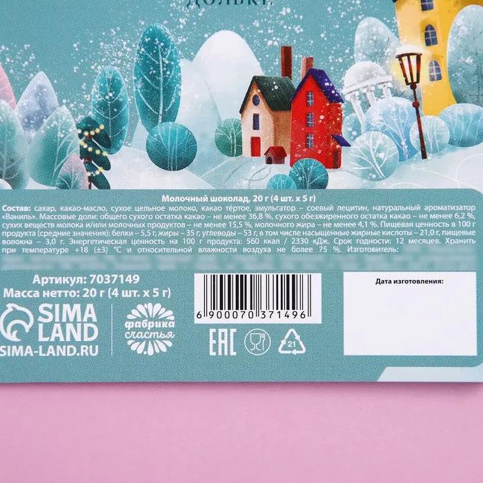 Шоколад мини молочный «Сладкого нового года», 5 г. x 4 шт. — Характеристики