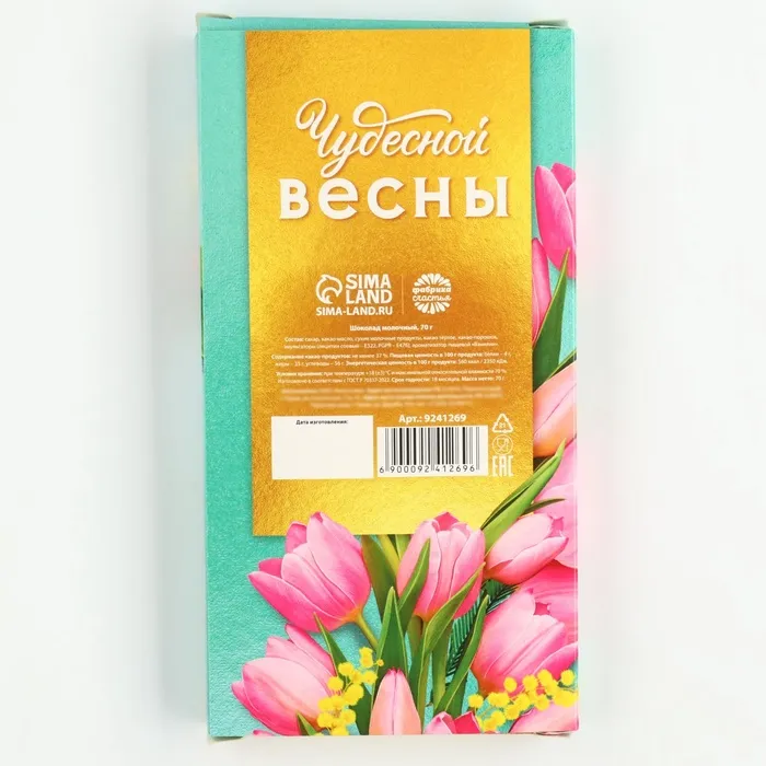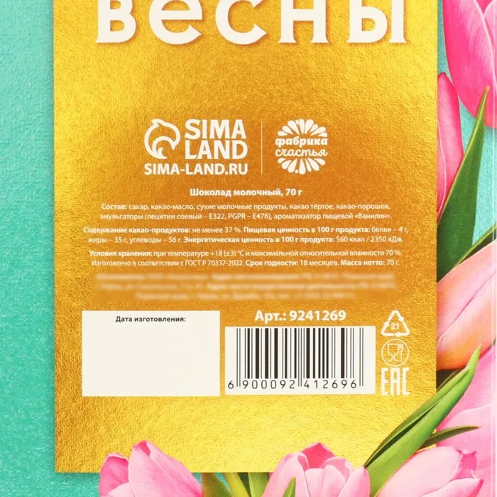 Шоколад молочный «8 Марта», 70 г. — Характеристики