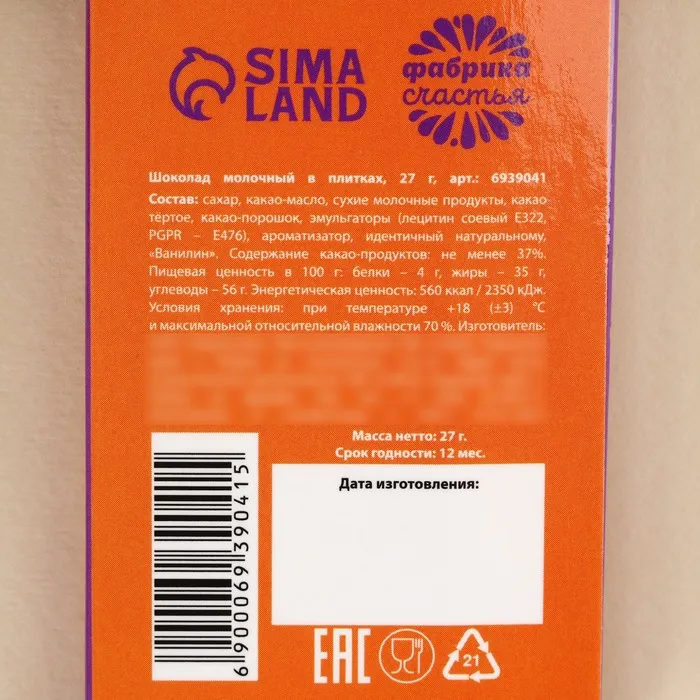 Шоколад молочный «Бесишь», 27 г. — Характеристики