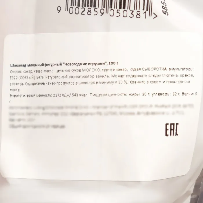 Шоколад молочный фигурный «Новогодние игрушки», 100 г — Характеристики