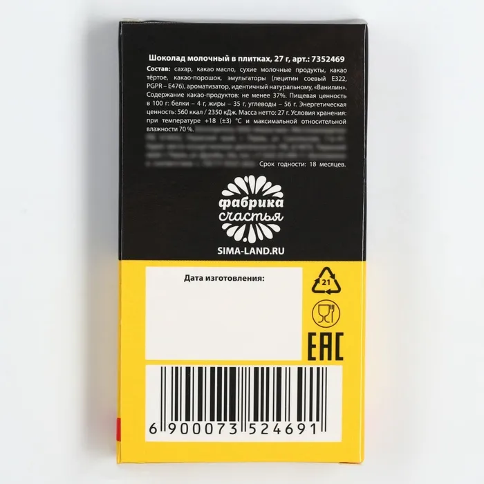 Шоколад молочный «Я в моменте», 27 г. — Характеристики