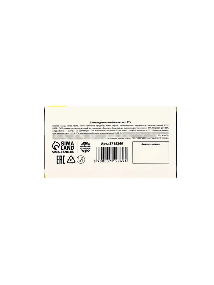 Шоколад молочный «Идея»: 27 г — Характеристики