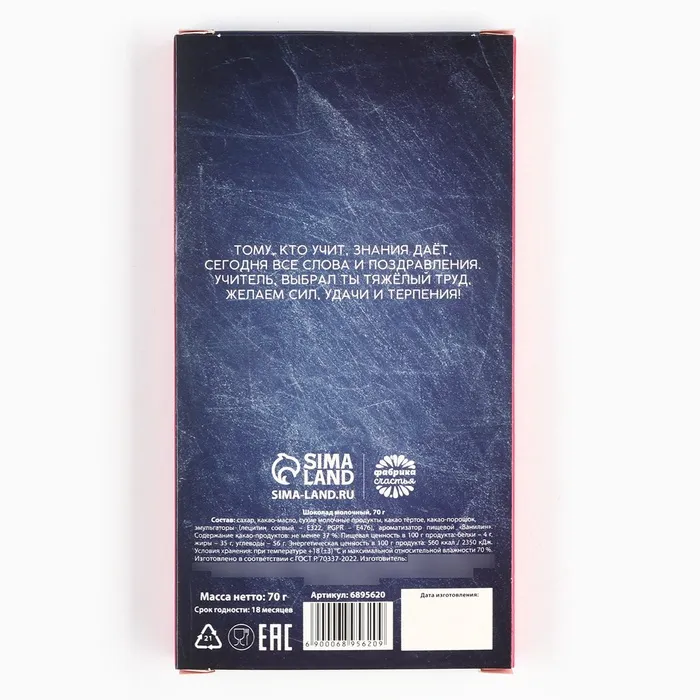 Шоколад молочный «Любимому учителю», 70 г. — Характеристики