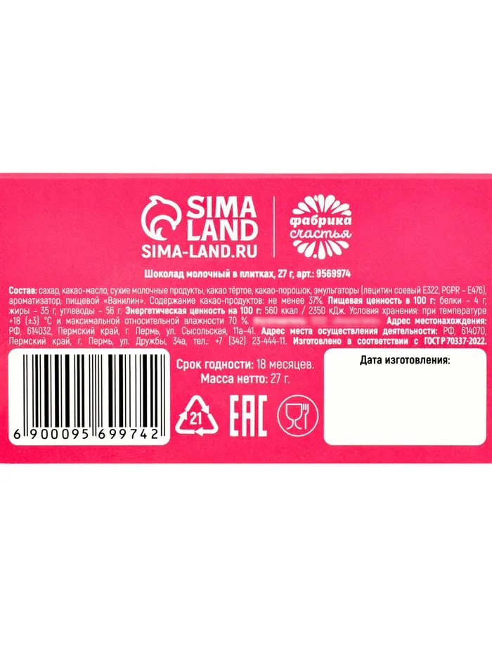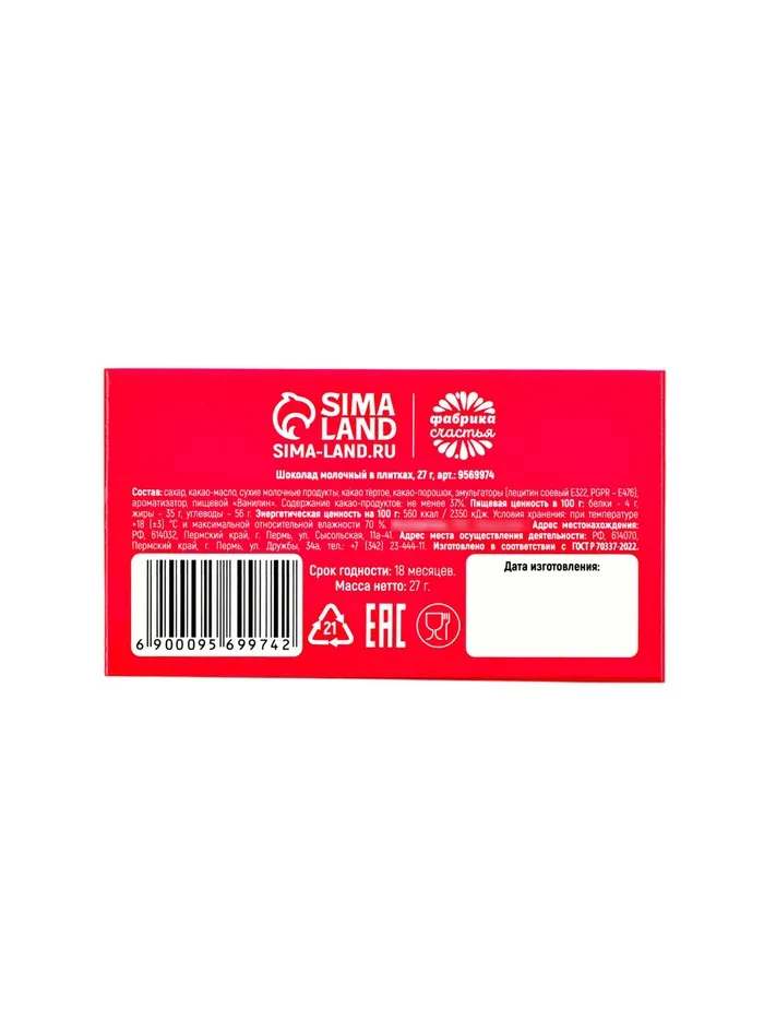 Шоколад молочный «Муж купил» , 27 г. — Характеристики