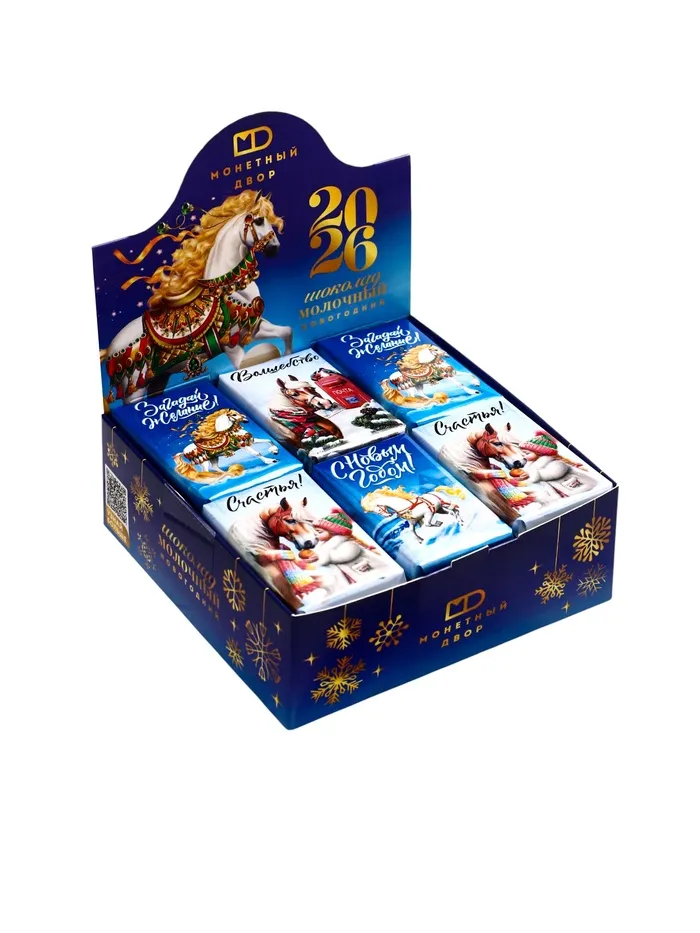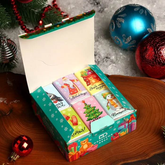 Шоколадная плитка – необычный и оригинальный способ поздравить с Новым годом! В ассортименте представлены интересные, забавные пожелания на любой вкус. Благодаря качественному составу, ваш сюрприз будет не только красивым, но и действительно вкусным!