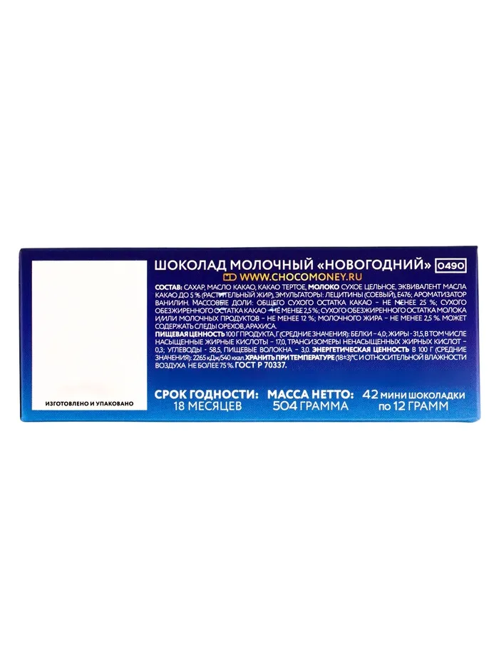 Шоколад молочный "Новогодний", 12 г — Характеристики