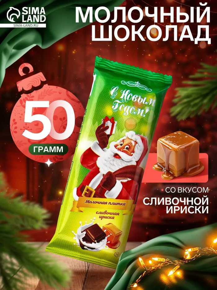 Ощутите волшебство Нового года в каждой дольке! Новогодний молочный шоколад со вкусом сливочной ириски — это уютное сочетание нежного молочного шоколада и мягкой карамельной ноты. Идеальный формат для создания праздничного настроения и небольших сладких сюрпризов.