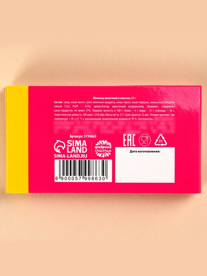 Шоколад молочный «Спасибо», 27 г. — Характеристики