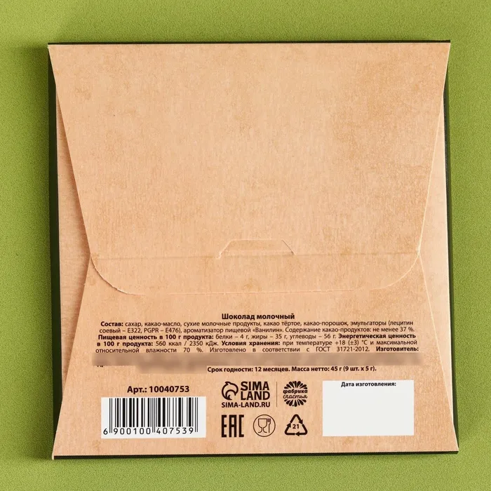Шоколад молочный «Верь в свои силы», 45 г (9 шт х 5 г). — Характеристики