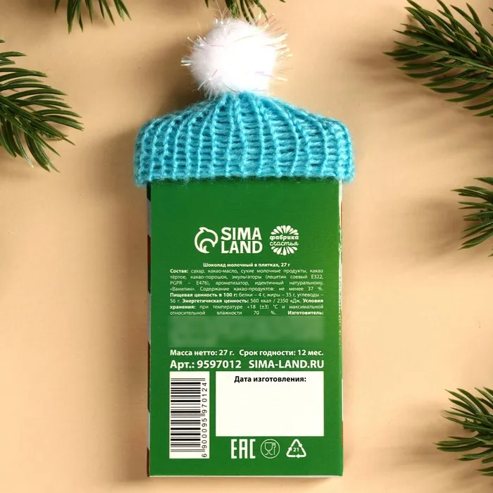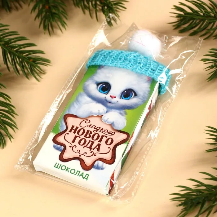 Шоколад на новый год молочный «Котик» в шапочке, 27 г. — Характеристики