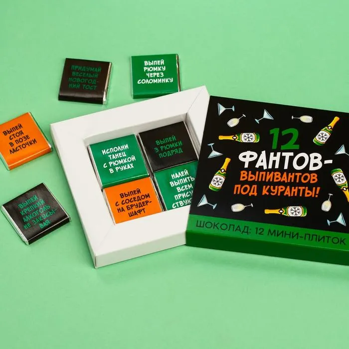 Шоколад новогодний молочный «12 фантов-выпивантов», 5 г. x 12 шт. — Характеристики