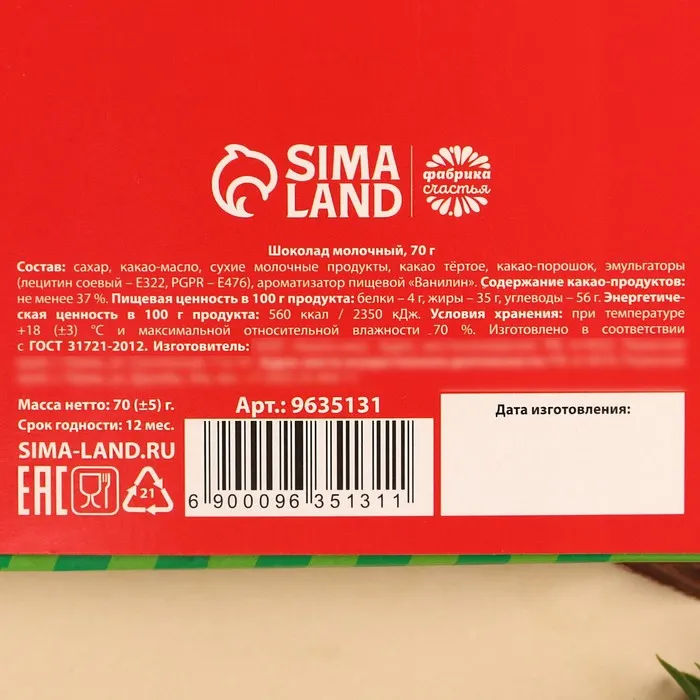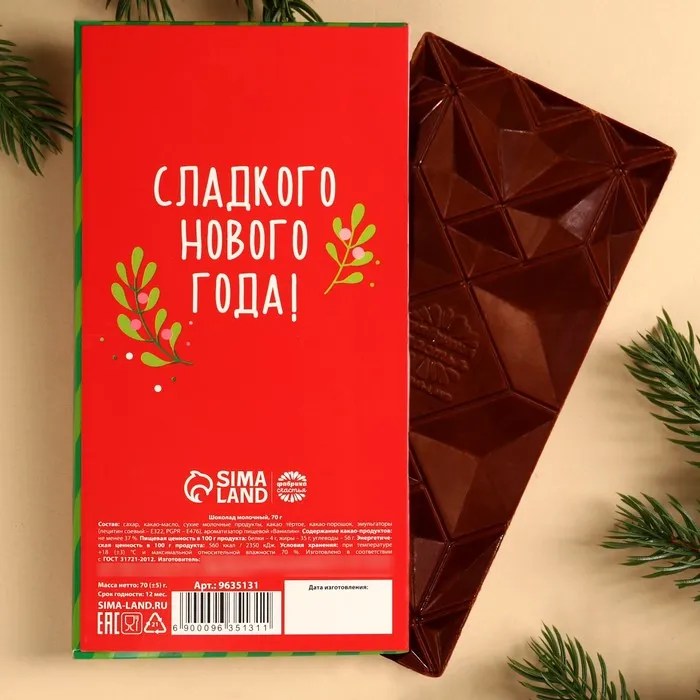 Шоколад новогодний молочный «Я не подарок», 70 г. — Характеристики