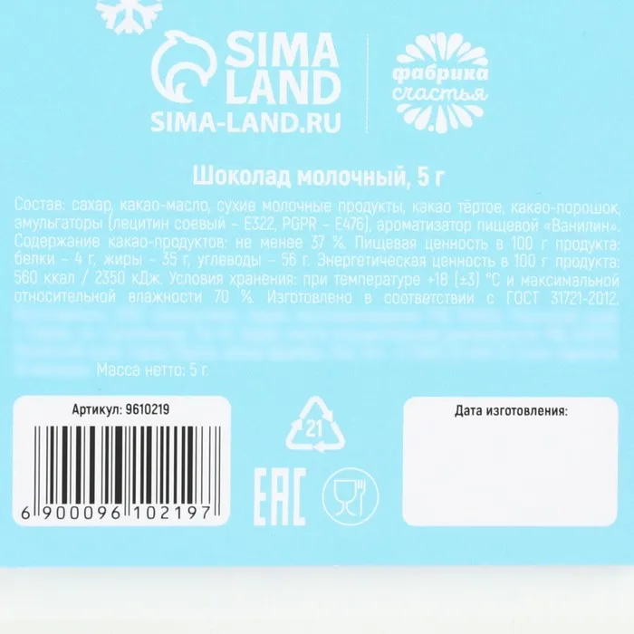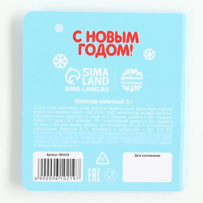 Шоколад новогодний молочный «Осадки» в открытке, 5 г. х 1 шт. — Характеристики
