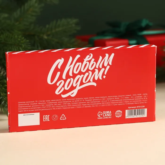 Шоколад новогодний молочный «От Деда Мороза» в открытке с кармашком для денег, 70 г. — Характеристики