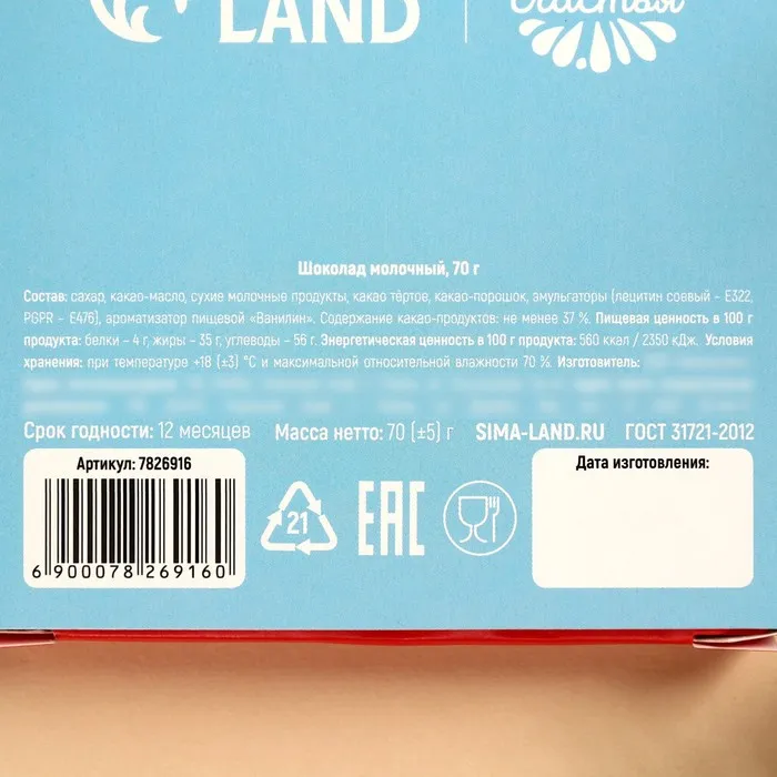 Шоколад новогодний молочный «Согревают уютом», 70 г. — Характеристики