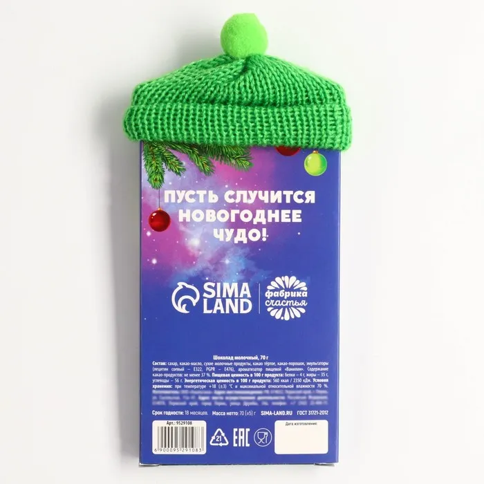 Шоколад новогодний молочный «Змея» в шапочке, 70 г. — Характеристики