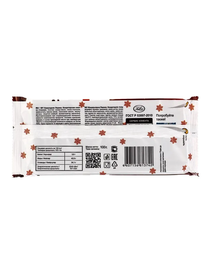 - Классическая форма плитки: Удобный формат на 100 грамм позволяет легко дозировать порции и делиться с близкими.