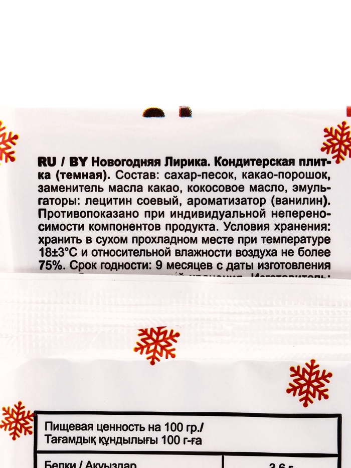Шоколад тёмный «Новогодняя», 100 г — Характеристики
