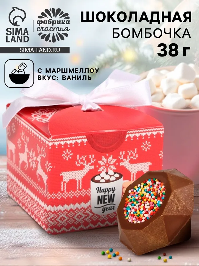 Эта крошка просто БОМБА! Молочный шоколад в тандеме с нежнейшими маршмеллоу и цветной посыпкой подарят новый спектр вкусов вашему напитку.