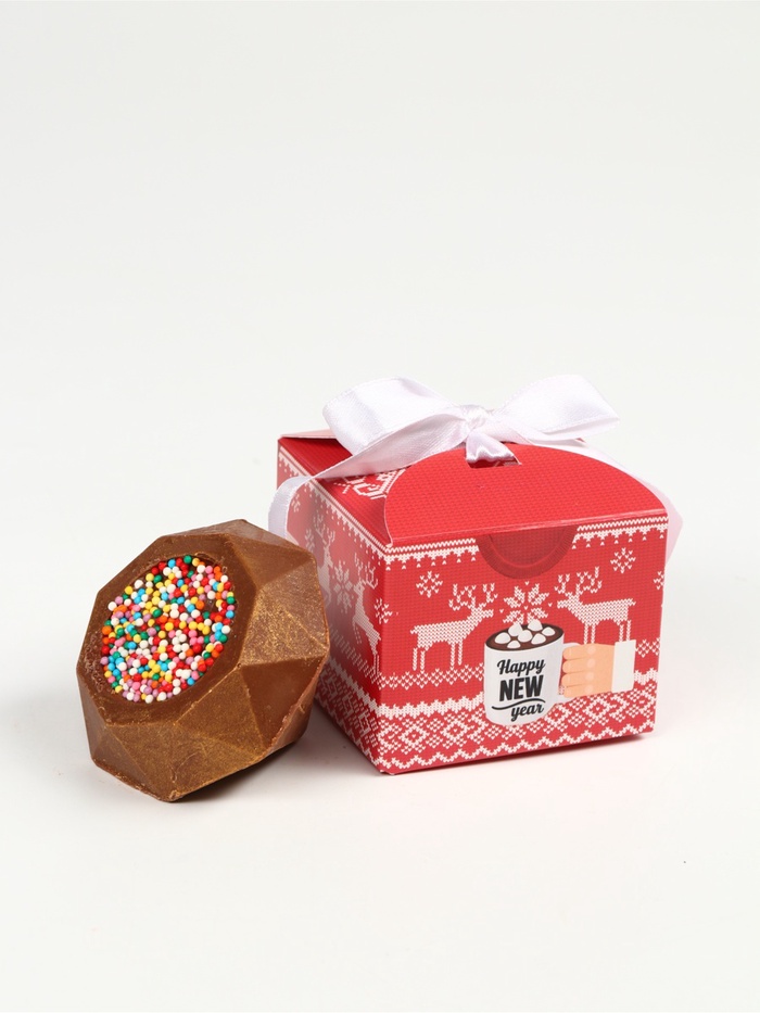 Превосходный взрывной десерт приукрасит драгоценные новогодние и рождественские моменты. Шоколад завернут в оригинальную праздничную упаковку, отлично подойдет для подарка.