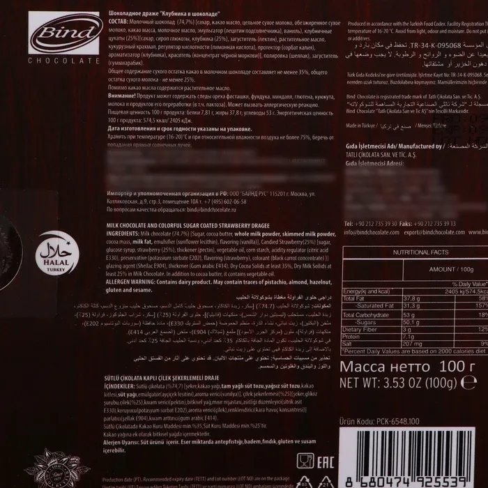 Упакованное в стильную и удобную упаковку объемом 100 г, это угощение идеально подходит как для личного наслаждения, так и для подарка. Шоколадное драже станет удачным дополнением к чаепитию, позволяет насладиться сладким моментом в любое время дня. Благодаря высокому качеству используемых ингредиентов, вы можете быть уверены, что получаете не только вкусный, но и натуральный продукт.