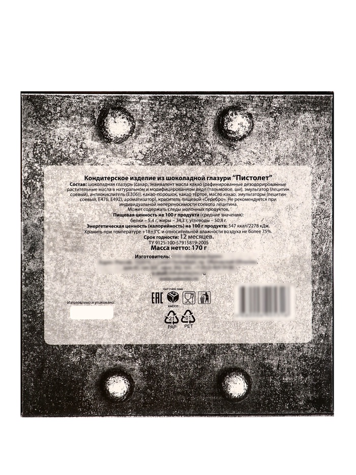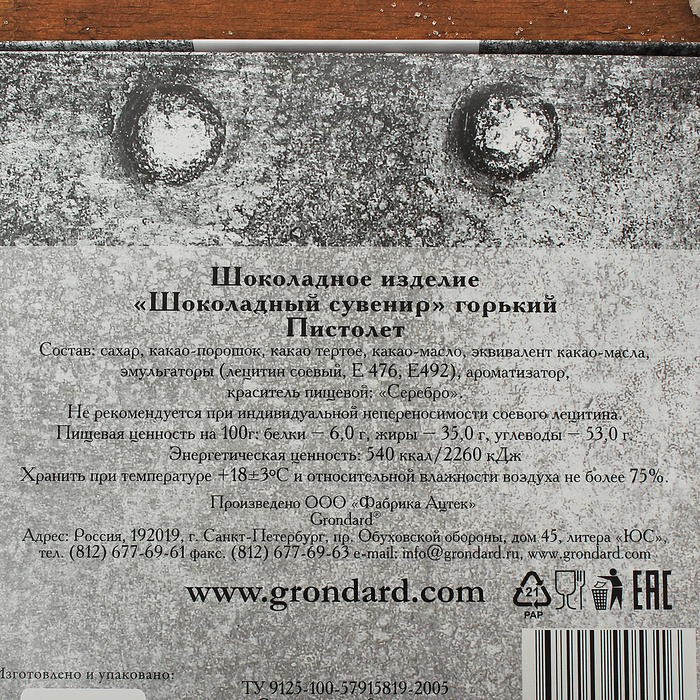 Шоколадное изделие «Шоколадный сувенир», горький «Пистолет», 170 г — Характеристики
