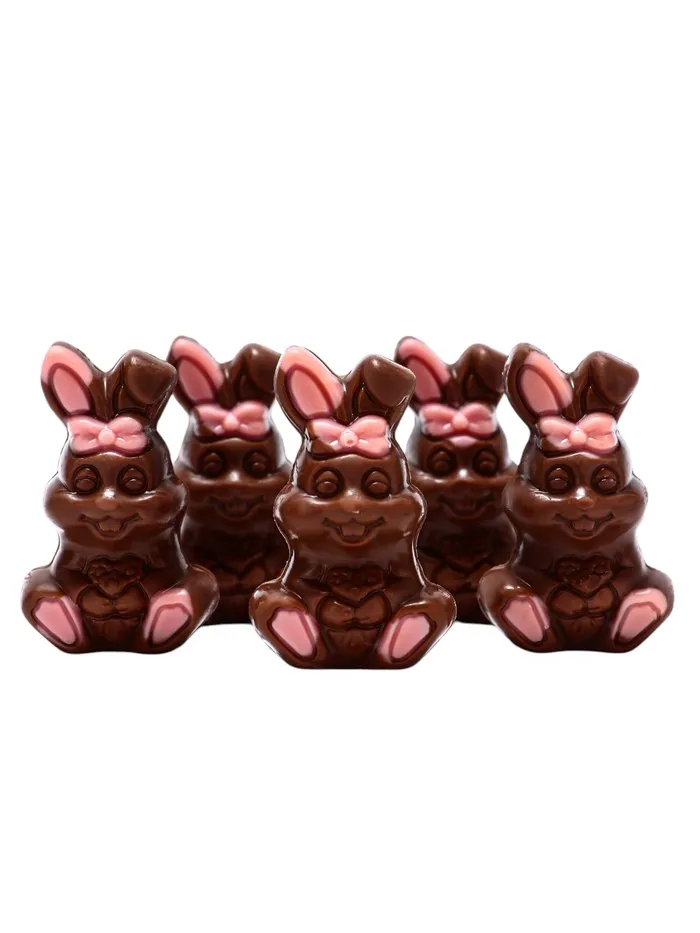 Создайте атмосферу праздника! Шоколадные фигурки в виде кроликов- это идеальное угощение для Пасхи. Эти сладости из молочного шоколада с добавлением ванили станут ярким акцентом на вашем столе и порадуют всех гостей.