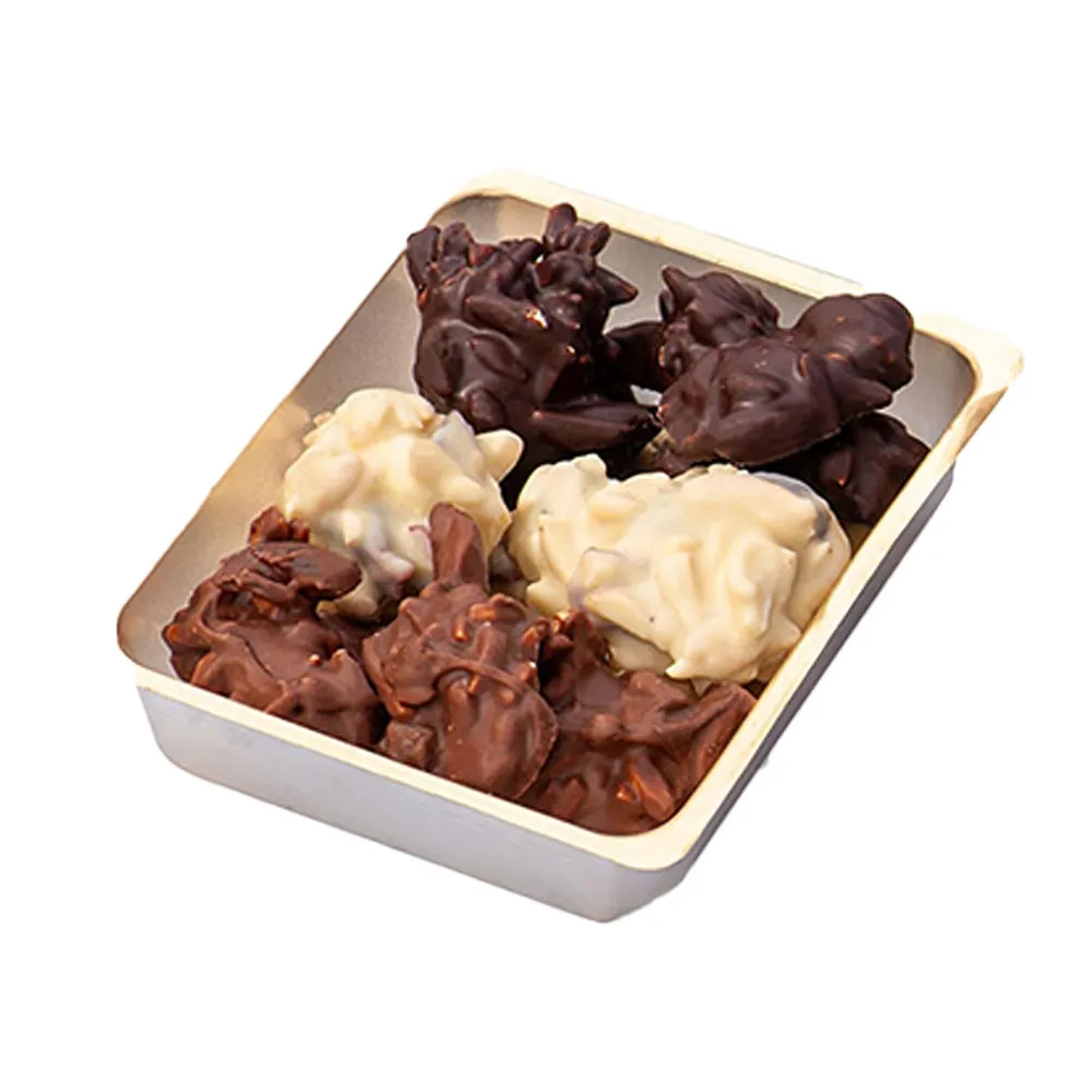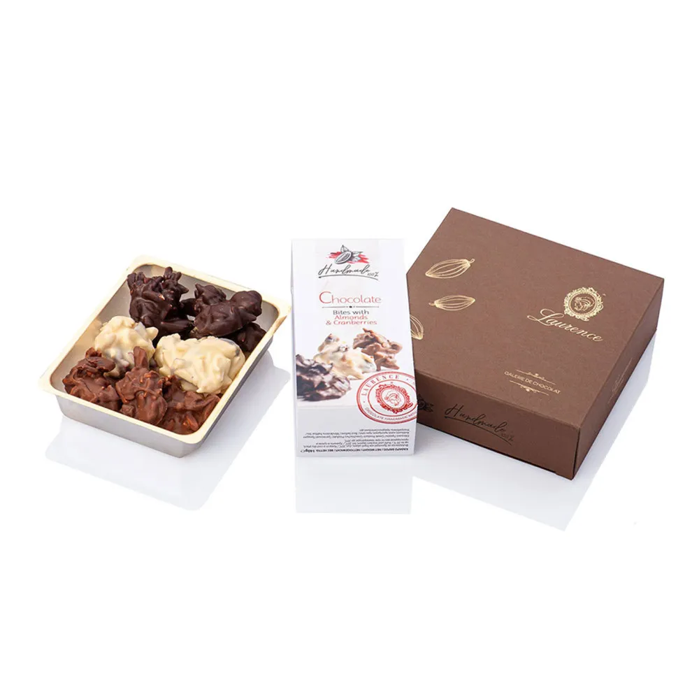 В этой стильной коробке вы найдете три вида ручной работы шоколадных конфет: хрустящий миндаль и нежно кислую клюкву, покрытые белым или молочным шоколадом. Этот изысканный десерт придется по вкусу каждому, поэтому поделитесь им с друзьями или подарите знакомому (особенно если вы не знаете, какие вкусы он предпочитает).