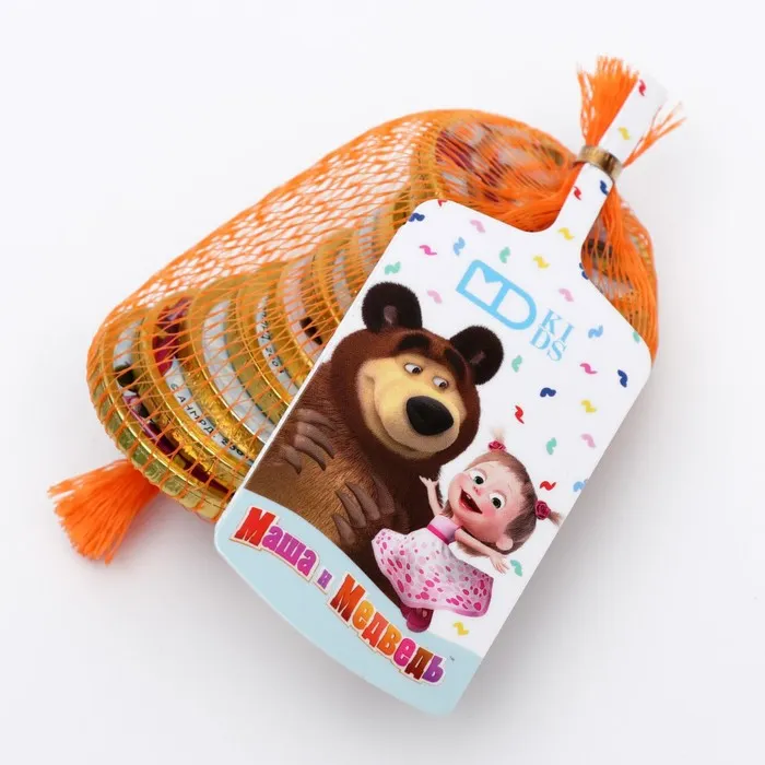Золотая авоська "Маша и Медведь" (6 г) — это увлекательное и вкусное угощение для детей и взрослых! Упакованные в яркую и привлекательную упаковку, шоколадные монетки с глазурью подарят радость и моменты сладкого наслаждения.