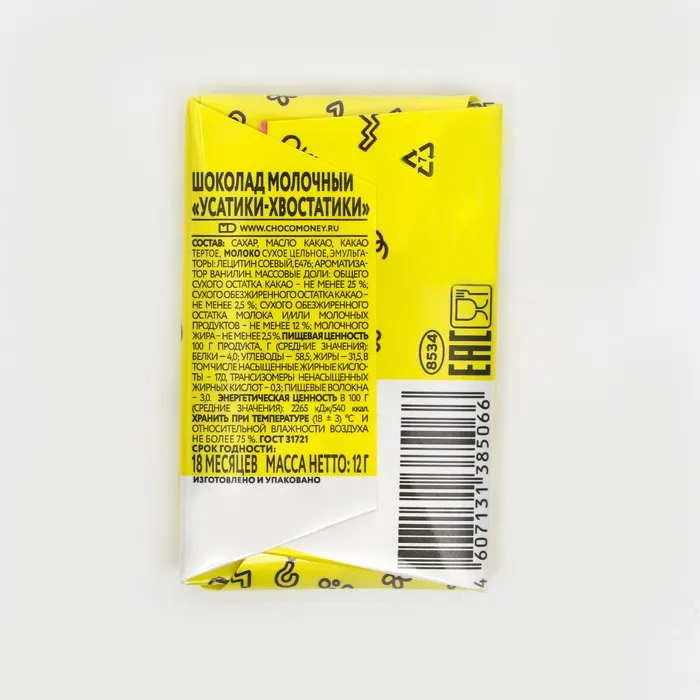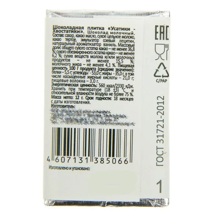 Шоколадные плитки "Усатики-Хвостатики" легко упакованы, что делает их удобными для приятного сюрприза или как маленький подарок для друзей и близких. Их можно добавлять в подарочные наборы, использовать как красивое угощение на столе или просто насладиться ими в одиночку за чашечкой кофе или чая.